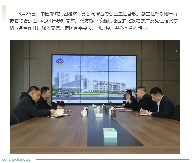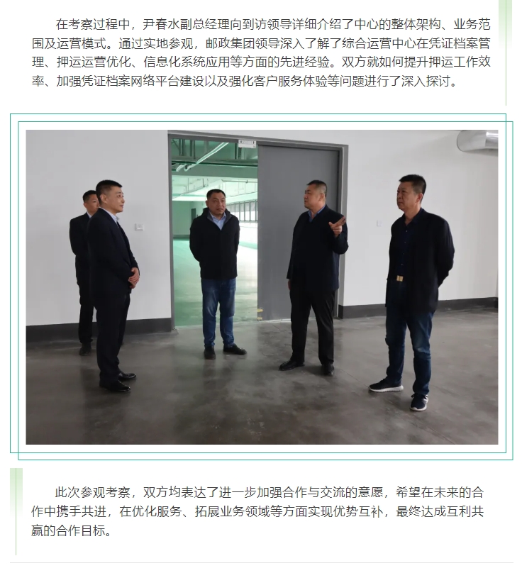 中國郵政集團(tuán)濰坊市分公司領(lǐng)導(dǎo)到集團(tuán)綜合運(yùn)營中心參觀考察